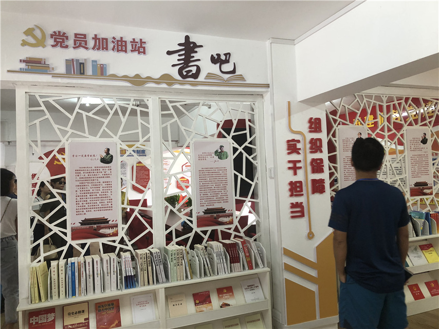 ▲現(xiàn)場(chǎng)教學(xué):參觀“黨員加油站”