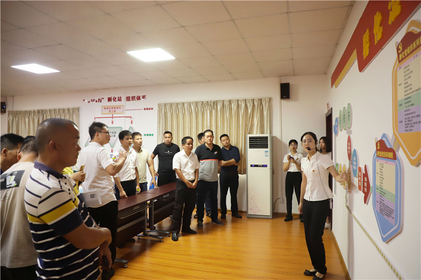 8月2?2日上午,北海?市銀海區(qū)黨?建培訓班學?員一行5?0人在柳?州市紅?色學院培?訓期?間,由北海市銀?海區(qū)?委組織部副部?長、兩新組?織黨?工委書?記、基?層辦主任吳家?順帶?隊到柳州兩新組織黨建孵?化中心和魚峰區(qū)兩新組織黨建孵化站考察交?流,魚峰區(qū)兩新黨建孵化站辦公室主任、集團聯(lián)合黨委委員、培訓學院副院長趙?彬陪同考察,孵化站辦公室副主任楊培作解說。
