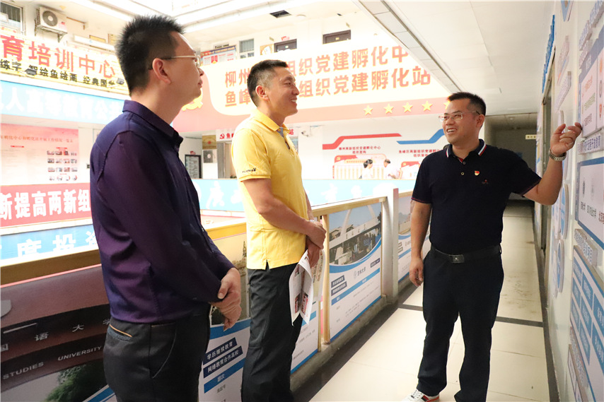 10月22日上午,南寧市良慶區(qū)委組織部副部長郭偉濤,廣西良慶經(jīng)濟開發(fā)區(qū)管理委員會副局長、機關(guān)黨支部書記翟持高,良慶區(qū)市場監(jiān)督管理局副局長、兩新黨工委副書記(兼)阮俊強以及良慶區(qū)50余名兩新組織黨務(wù)工作者到柳州兩新組織黨建孵化中心和魚峰區(qū)兩新組織黨建孵化站考察交流,孵化站副站長、集團聯(lián)合黨委書記蔣華,孵化站副站長、集團聯(lián)合黨委委員趙彬陪同考察。