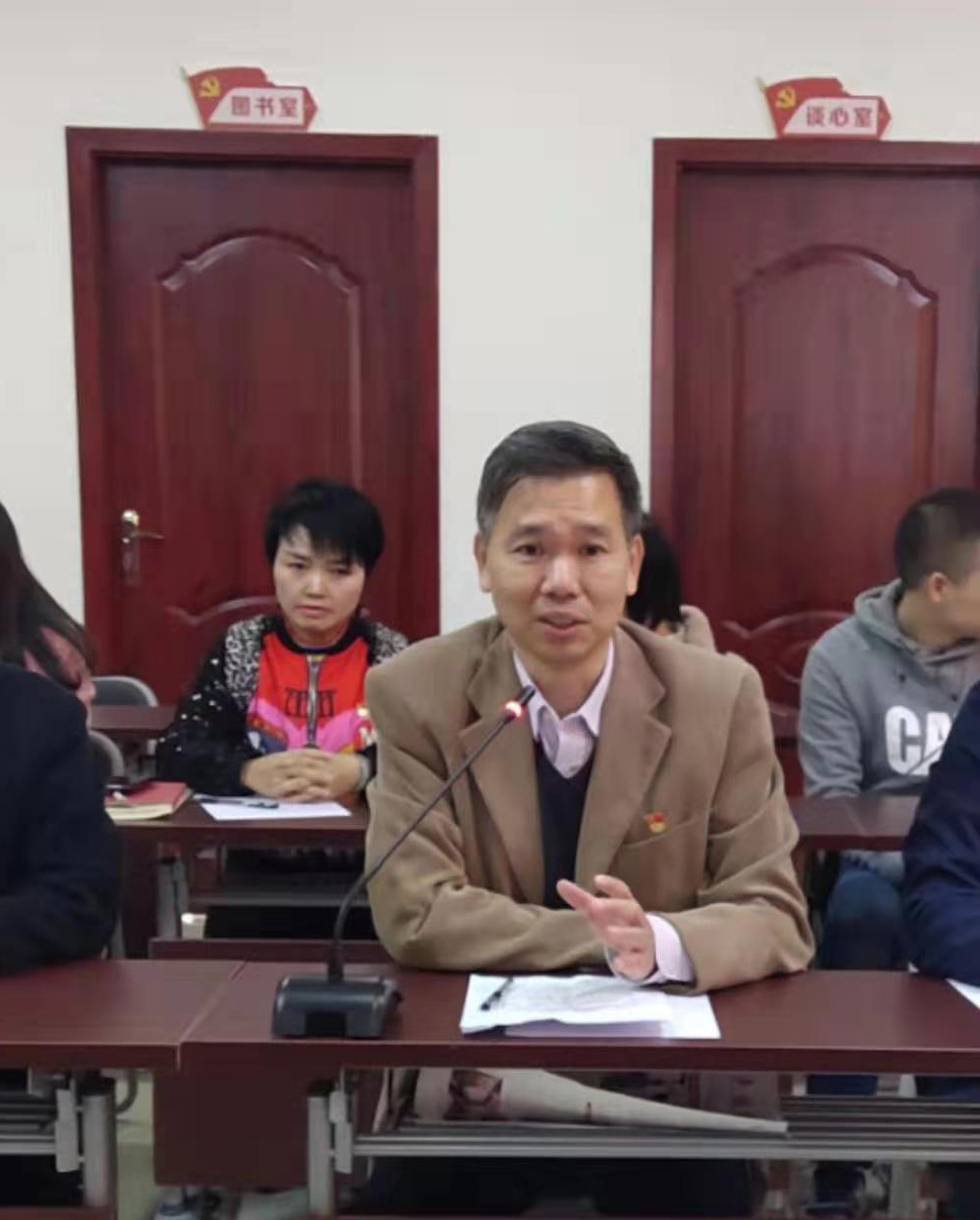 ▲繼續(xù)教育學(xué)院黨總支書記黃殿芳(主席臺(tái)左)帶隊(duì)蒞臨育才開展支部共建主題黨日活動(dòng)