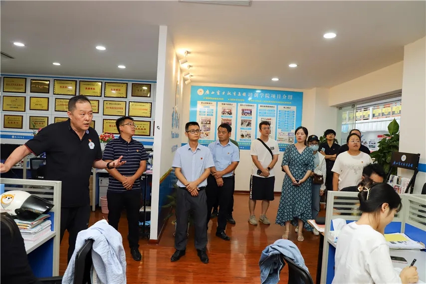 為進一步強化融水縣基層團建工作力度,擴大黨團組織覆蓋面,奮力開創(chuàng)融水縣基層團建工作新局面。8月31日,融水團縣委考察團由融水縣兩新工委副書記黃偉帶隊,融水團縣委書記韋山,副書記韋麗苗,融水縣非公團支部代表一行8人,蒞臨柳州市非公團建示范點——廣西育才教育集團考察調(diào)研,魚峰團區(qū)委副書記林思思,集團黨委委員、培訓學院院長趙彬、集團團委書記黃濤參加了座談會。