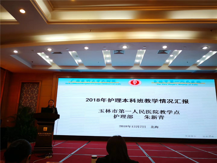 玉林市第一人民醫(yī)院護(hù)理部朱新青作為先進(jìn)單位發(fā)言