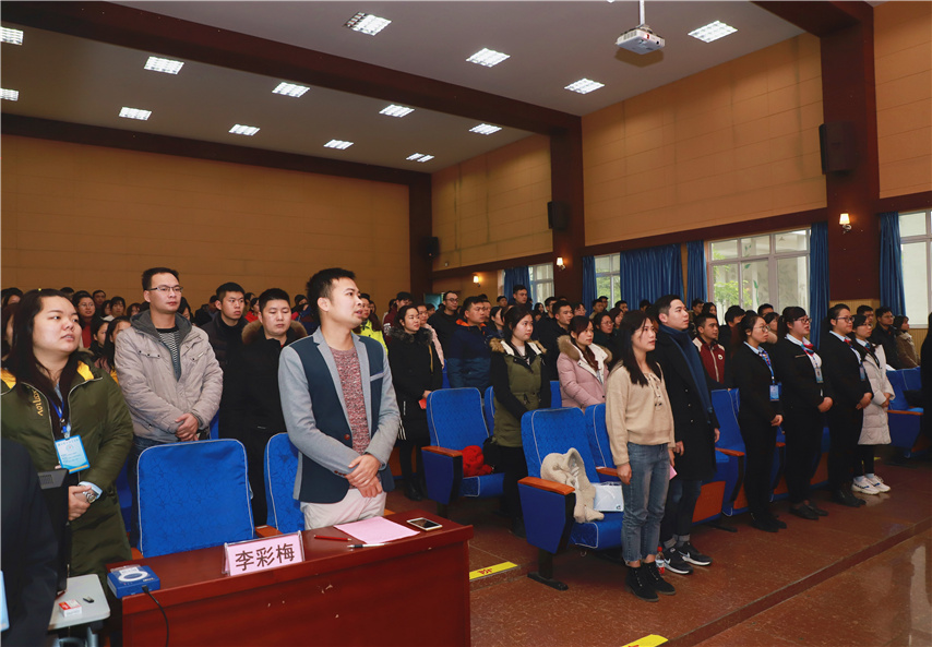 1月20日上午,廣西育才教育柳州本部充滿著喜慶的氣氛,廣西大學柳州育才函授站成人高等教育2019級新生開學典禮暨繼續(xù)教育學院校友會育才分會成立大會在這里隆重舉行。廣西大學繼續(xù)教育學院院長、繼續(xù)教育學院校友會會長蘇兆成、學院副院長、校友會常務副會長陳海、學院辦公室副主任、校友會副秘書長、廣西育才教育黨總支書記、函授站站長蔣華、副站長王志、李彩梅以及來自柳州各行各業(yè)的200余名新生代表參加了儀式活動。儀式由副站長王志主持。