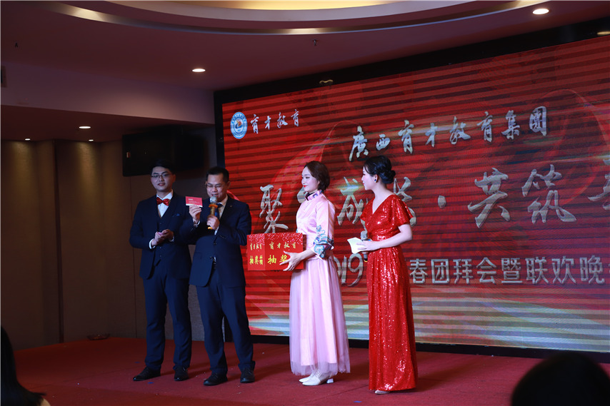 1月25日晚,廣西育才教育集團(tuán)2019年新春團(tuán)拜會暨聯(lián)歡晚會在柳州大唐嘉宴酒店桂中總店圓滿舉行。