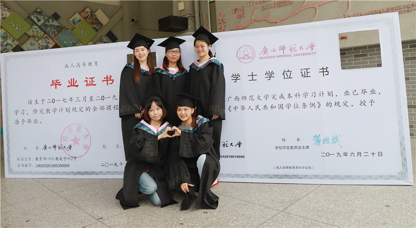 函授站站長蔣華老師用十個字概況了自己的講話,一是祝賀,祝賀2019屆畢業(yè)生順利畢業(yè);二是感謝,感謝廣西師范大學(xué)送教上門;三是感恩,常懷一顆感恩的心,關(guān)心和支持廣西師范大學(xué)的發(fā)展;四是提醒,提醒畢業(yè)生妥善保管好畢業(yè)證和畢業(yè)生檔案;五是歡迎,歡迎??频耐瑢W(xué)繼續(xù)報讀本科學(xué)歷。