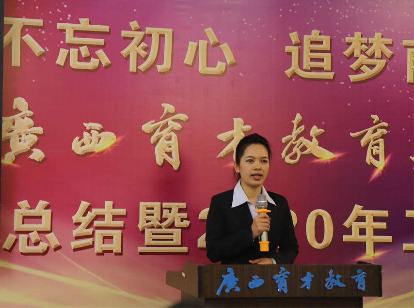 ▲本部運(yùn)營(yíng)中心覃賽花老師作先進(jìn)個(gè)人代表發(fā)言