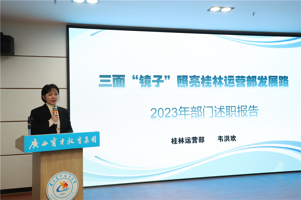 ▲教學(xué)教務(wù)部部長韋彥清作2023年度教學(xué)教務(wù)部、柳州運(yùn)營部工作述職
