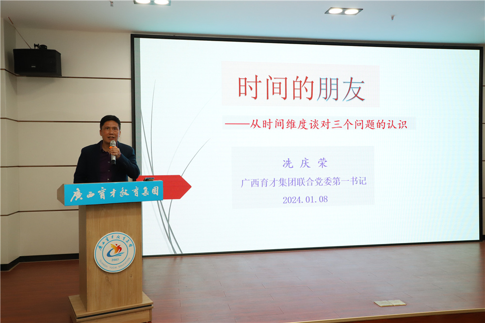 柳州市委組織部派駐集團(tuán)黨委第一書記冼慶榮以《時(shí)間的朋友》為題作了講話,他從時(shí)間維度分享了自己對三個(gè)問題的認(rèn)識:一、認(rèn)識黨建、黨組織和黨員的作用;二、認(rèn)識經(jīng)濟(jì)形勢和市場環(huán)境;三、認(rèn)識知識積累和能力提升。希望大家跟上時(shí)代的腳步,為集團(tuán)高質(zhì)量發(fā)展作出自己的貢獻(xiàn)。