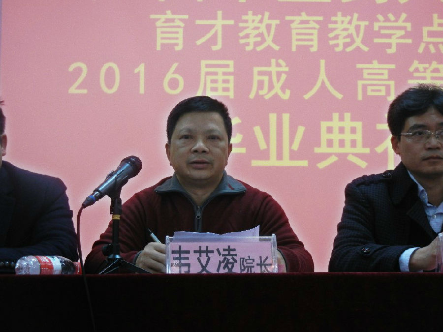韋艾凌院長首先代表學(xué)校對順利完成學(xué)業(yè)的全體畢業(yè)生表示熱烈祝賀,贊揚(yáng)了成教學(xué)生克服種種困難,較好地處理了工學(xué)矛盾,做到了學(xué)習(xí)工作兩不誤,順利完成學(xué)業(yè)的拼搏精神。其次簡要地向各位同學(xué)介紹了近年來學(xué)院的發(fā)展成就,最后,韋院長寄語畢業(yè)生:“今天同學(xué)們告別校園,完成了自己人生中的一個重要提升,即將邁進(jìn)更美好的明天去創(chuàng)造更輝煌的未來。請同學(xué)們經(jīng)常與學(xué)校保持聯(lián)系,當(dāng)你們事業(yè)有成的時候,不要忘了向母校報喜,母校會為你們而驕傲;當(dāng)你們遇到困難和挫折時,不要忘了你們的后面有永遠(yuǎn)都在關(guān)注你們的母校,母校永遠(yuǎn)是你的靠山、母校會給予你們最大的幫助和支持?!?/span>