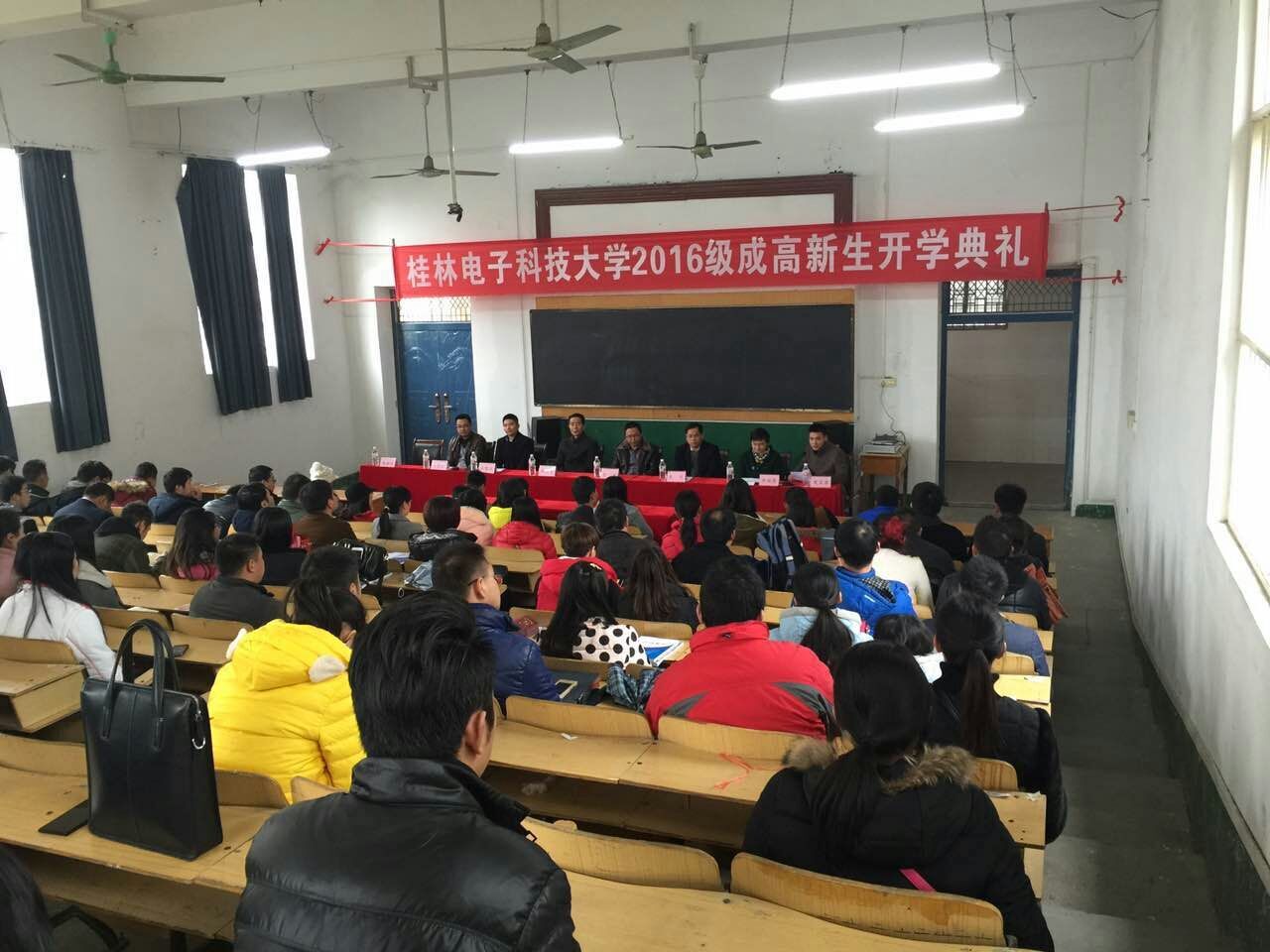3月12日,桂林電子科技大學(xué)校本部在桂林六合路123號(hào)西校區(qū)隆重舉行了成人高等教育2016級(jí)新生開(kāi)學(xué)典禮,繼續(xù)教育學(xué)院院長(zhǎng)甘勇、直屬黨支部書(shū)記劉燕軍、向榮副院長(zhǎng)、學(xué)歷部主任李麗芳、廣西育才教育集團(tuán)黨支部書(shū)記兼董事長(zhǎng)蔣華出席典禮。典禮分上下午舉行,上午舉行專(zhuān)科開(kāi)學(xué)典禮,由繼續(xù)教育學(xué)院辦公室主任程華主持,下午舉行本科開(kāi)學(xué)典禮,由學(xué)歷部李麗芳主任主持。