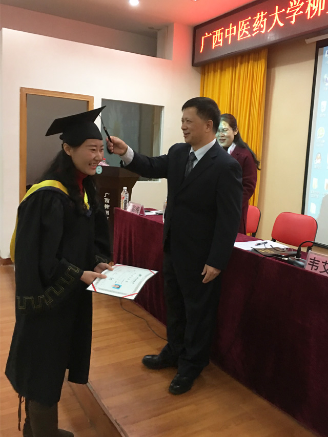 1月15日下午,廣西中醫(yī)藥大學(xué)育才教學(xué)點(diǎn)2017屆成高學(xué)生畢業(yè)典禮暨學(xué)位授予儀式在柳州市中醫(yī)院勝利召開。廣西中醫(yī)藥大學(xué)成教院院長、博士生導(dǎo)師、二級(jí)教授韋艾凌、副院長黃瑞誠、院長助理、培訓(xùn)部主任楊繼峰出席了畢業(yè)典禮,韋艾凌院長發(fā)表重要講話。廣西中醫(yī)藥大學(xué)育才教學(xué)點(diǎn)負(fù)責(zé)人蔣華老師,育才教育李彩梅副校長以及來自柳州各大醫(yī)院、衛(wèi)生院、醫(yī)藥公司和藥店近100多名畢業(yè)生代表共同參加了畢業(yè)典禮。