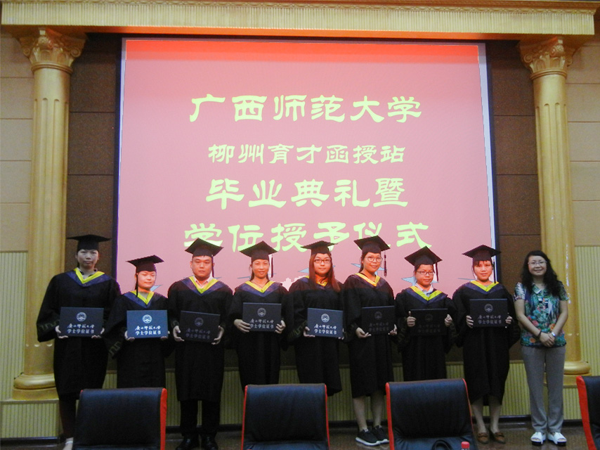 畢業(yè)典禮在奮發(fā)、圖強(qiáng)的廣西師范大學(xué)校歌《育才之歌》中圓滿(mǎn)結(jié)束。