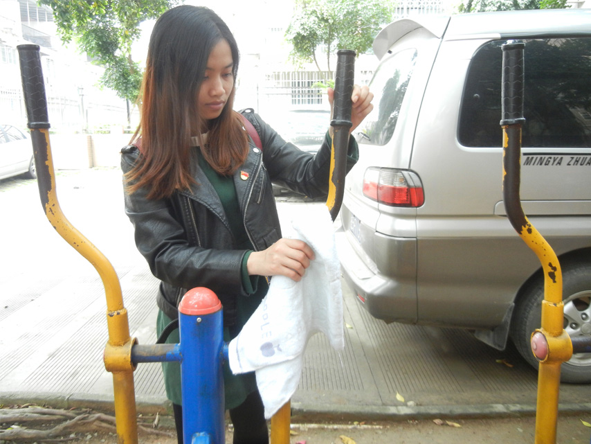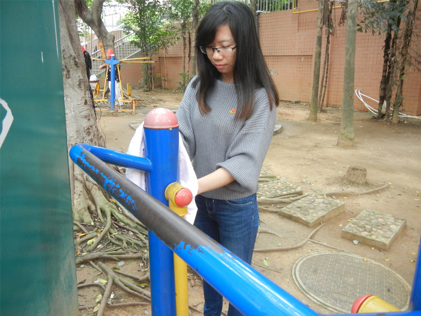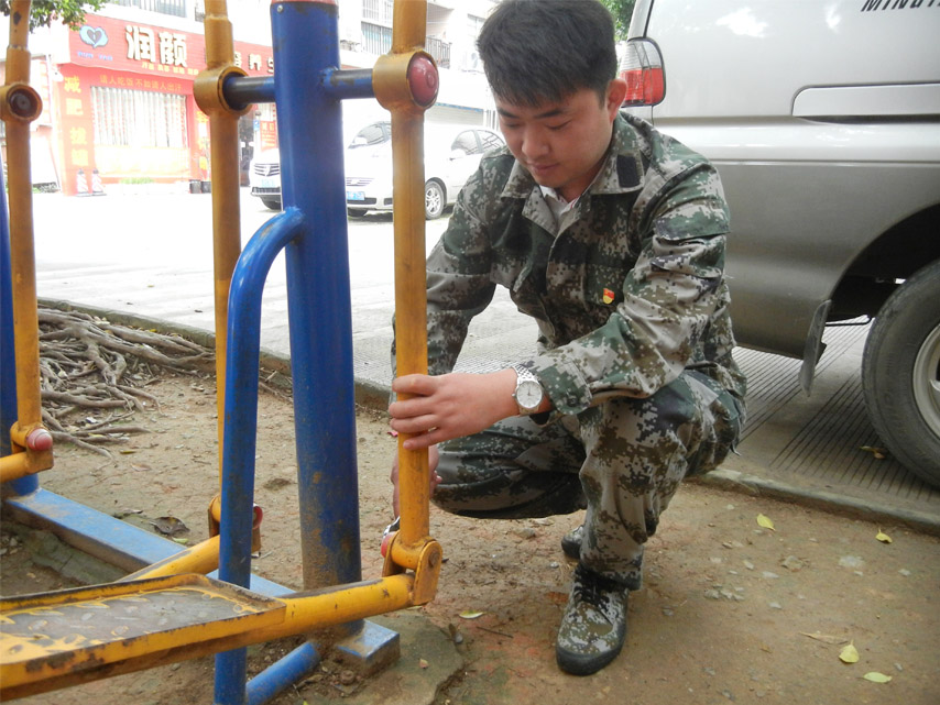 在活動中,育才黨支部黨員代表對寶蓮社區(qū)內健身器材進行了全面的檢查,擦拭抹洗健身器材,發(fā)現螺絲松了、軸轉動不靈了等小毛病及時維修,杜絕居民在使用的過程中有不安全的因素發(fā)生。