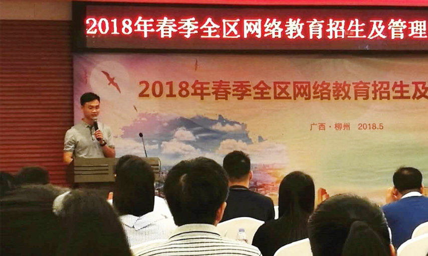 廣西廣播電視大學(xué)網(wǎng)絡(luò)教育學(xué)院副院長唐建軍作2018年招生工作布置